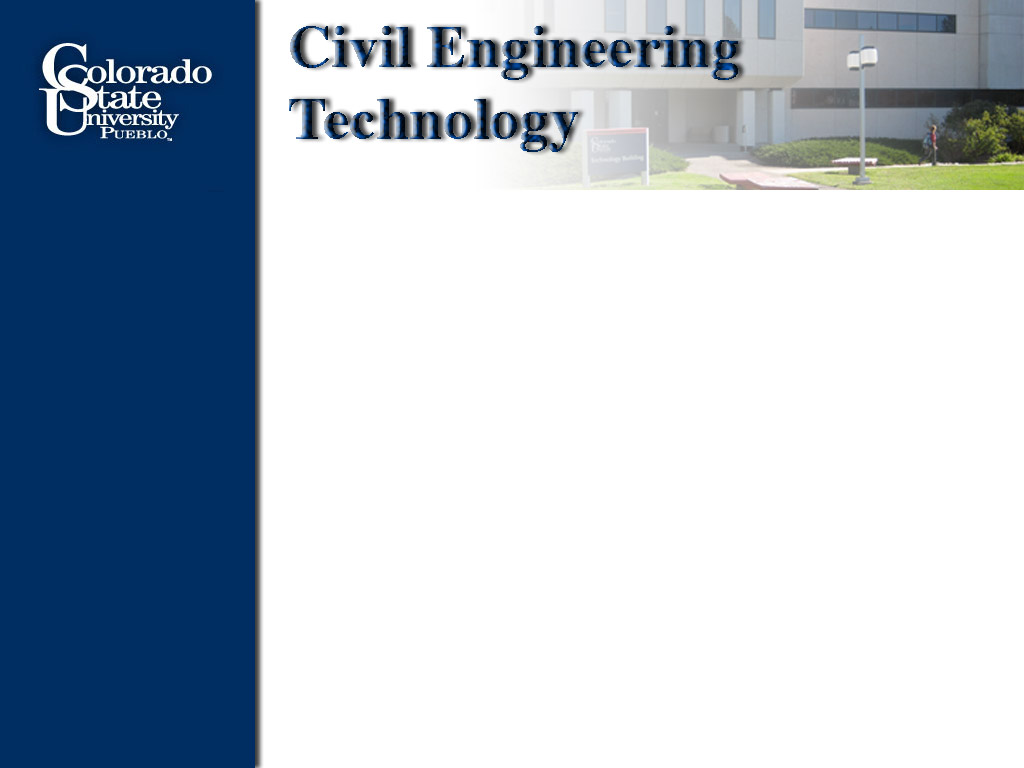 Hello and weclome to the Civil Engineering Technology website for Colorado State University-Pueblo. This website is filled with information for both future and current students in the CET Program. If you are interested in becoming a CET student I welcome you to check out all the links on this site, particularly "What is CET?" and "Prospective Sutdents" links. I also encourage you to contact and set up a meeting with one of our advisors in the department which can be found on the "Faculty" and "Links" pages. Again, welcome to the CET website at CSU-P!